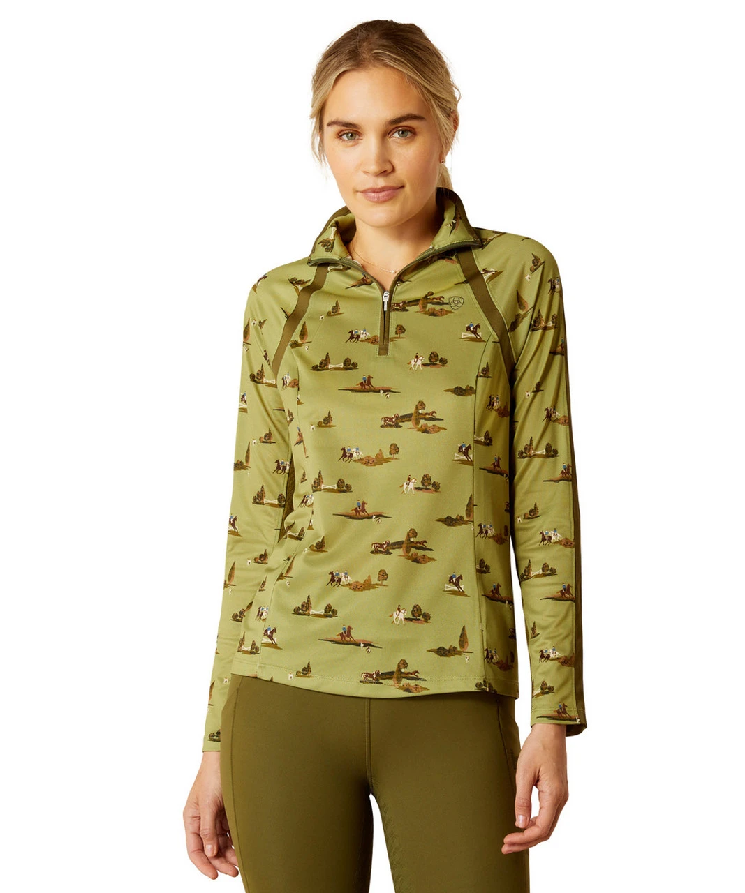 Sunstopper 3.0 1/4 Zip Baselayer Print long sleeve shirt is a soft, stretchy piqué knit that ensures a professional appearance. The quarter zip with mock collar allows as much coverage as you want and is great for layering with vests. The 3.0 Sunstopper has discreet mesh at the underarm and breathable mesh panels to provide welcome ventilation. With its sporty, versatile look and features, the Women’s Ariat Sunstopper 3.0 1/4 Zip Baselayer in chic Ariat prints is ideal for other sports and recreation, too.