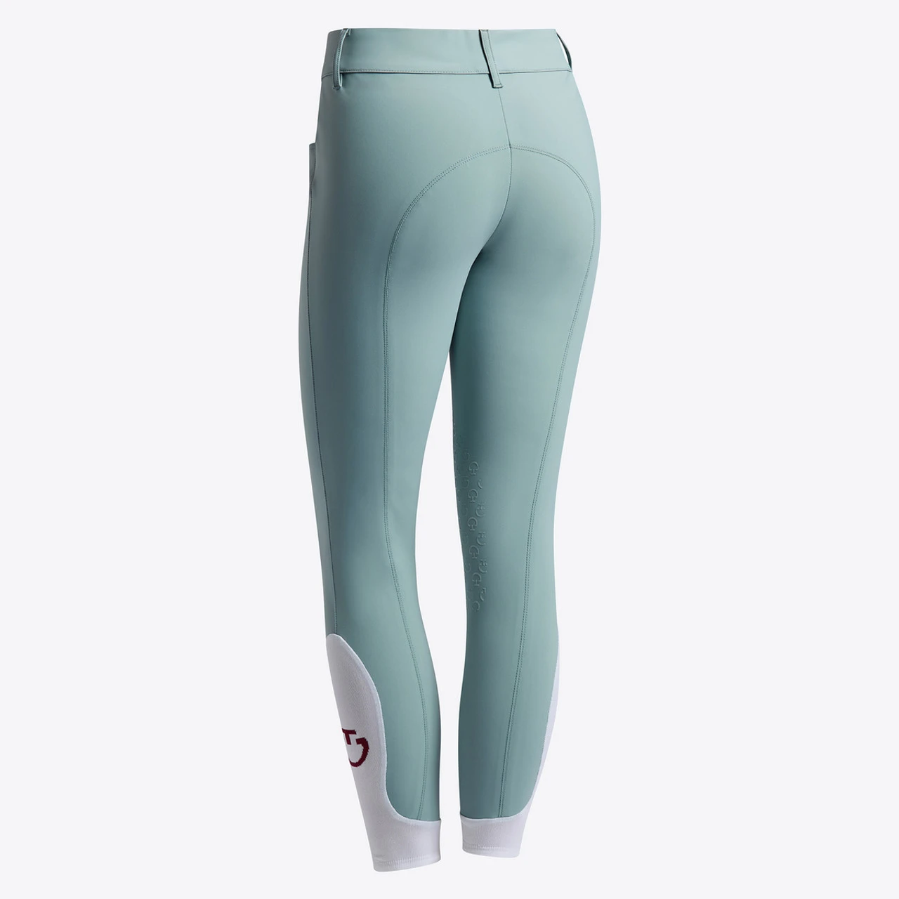 Cavalleria Toscana American Knee Patch Breeches in Blue Fog and Light Teal Green are here to refresh your Spring 2025 riding wardrobe! Our customers love the elegant, luxurious look and feel of these equestrian breeches with 4-way stretch technical fabric and fine tailoring. American Knee Patch Breeches have a higher rise and flexible silicone grip system in the CT logo pattern.