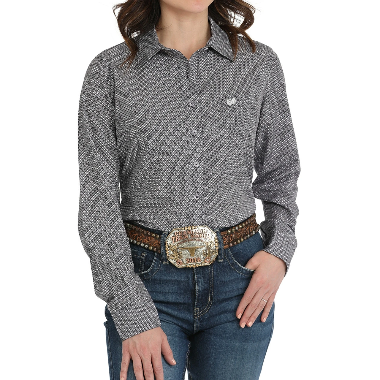 This Cinch ArenaFlex Purple Geometric Print Shirt for women has it all, with great color, stretch comfort, and classic style. The long sleeve print shirt in soft Purple has a pretty, feminine look plus a great design for riding and competition.