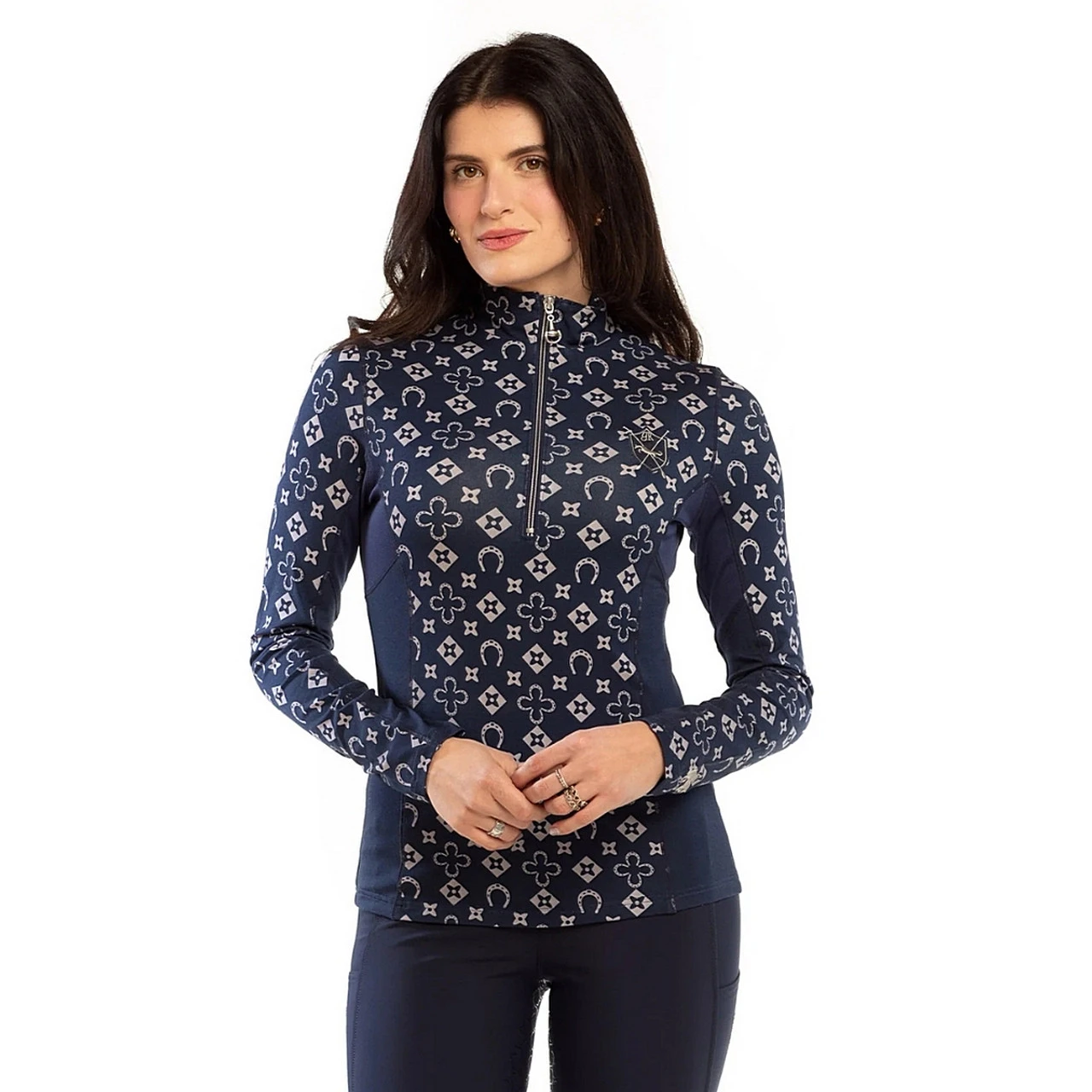 Women’s equestrian top is made with a bamboo/cotton/spandex blend fabric that wicks moisture and is antibacterial for long-lasting freshness. Goode Rider Ideal Shirt features a breathable panel under the arms (not see-through) for extra ventilation. It’s a great shirt for schooling or showing, thanks to the stock loop at the collar. A Goode Rider logo emblem and coordinating zipper with signature snaffle bit pull add stylish detail. The Ideal Show Shirt from Goode Rider has a wonderful cozy feel and is easy to layer with vests and jackets.