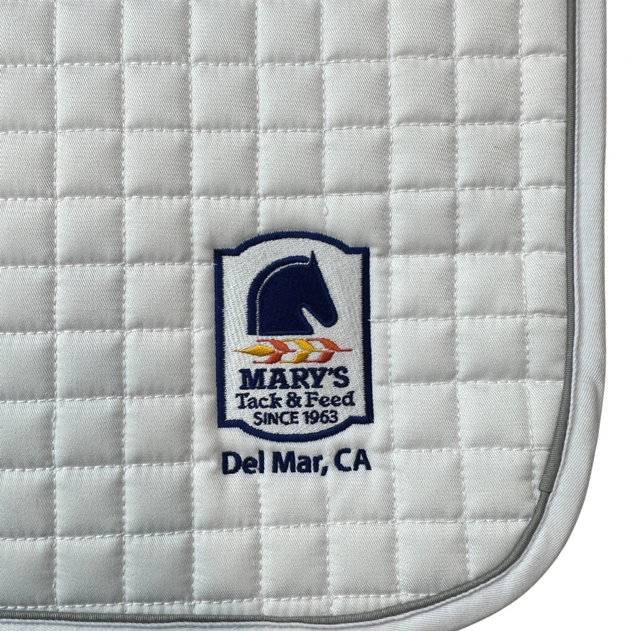 The Mary’s Horseware Sport Saddle Pad is a beautiful, modern saddle pad with a classic Mary’s Tack & Feed embroidery logo at the left corner. This is a wonderful all-purpose/jump saddle pad with an ergonomic shape for a close contact fit and performance. The white saddle pad has elegant piping plus the MTF embroidery that represents our commitment to horses and riders since 1963.