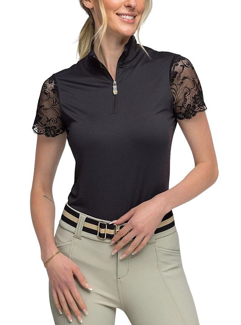 New for the season, the women’s Kastel Denmark Lace Cap Sleeve 1/4 Zip Sun Shirt is all about elegance with outstanding comfort and equestrian performance. Feminine and athletic Kastel Denmark Lace Cap Sleeve Shirt features technical fabrics for sun protection, odor control, and skin cooling.