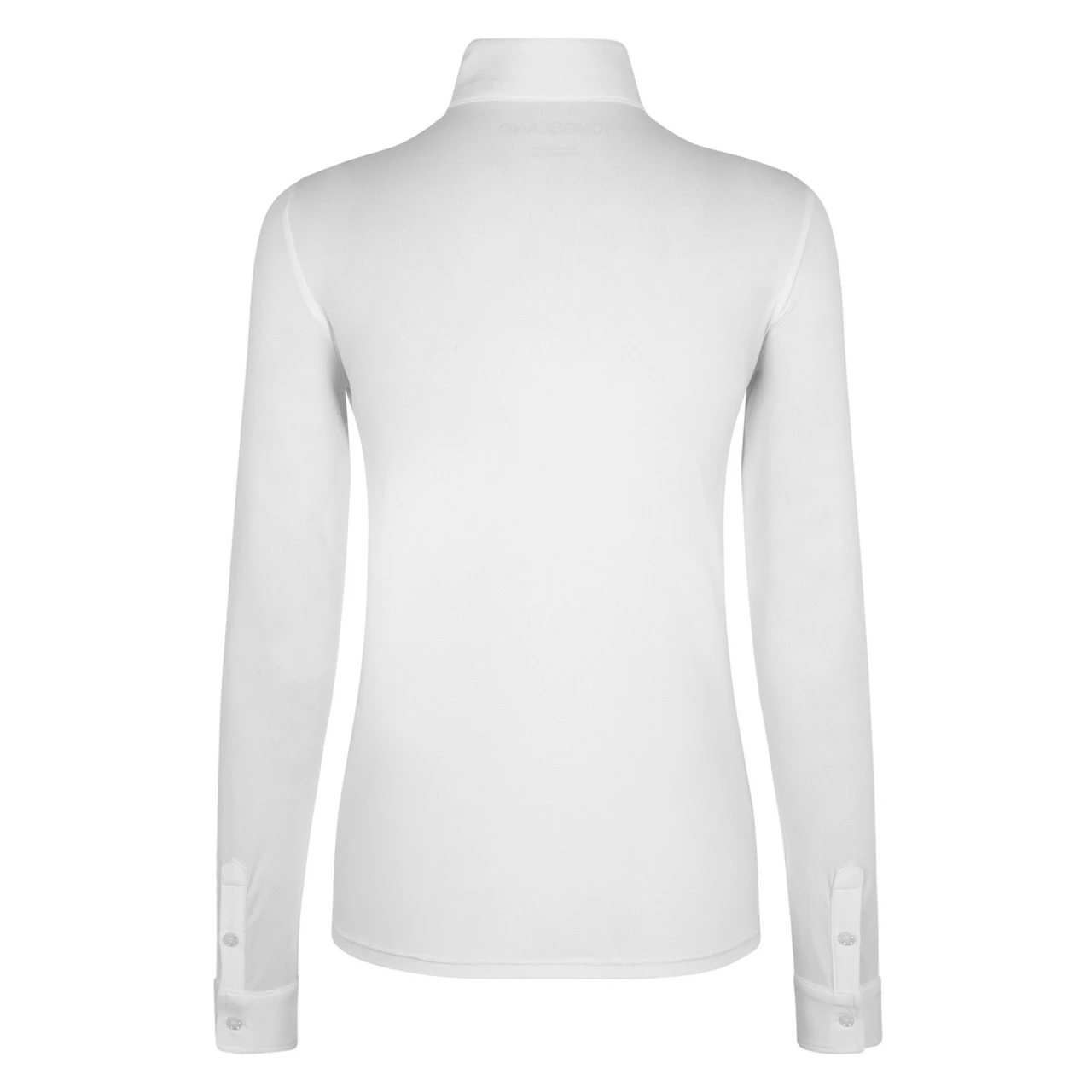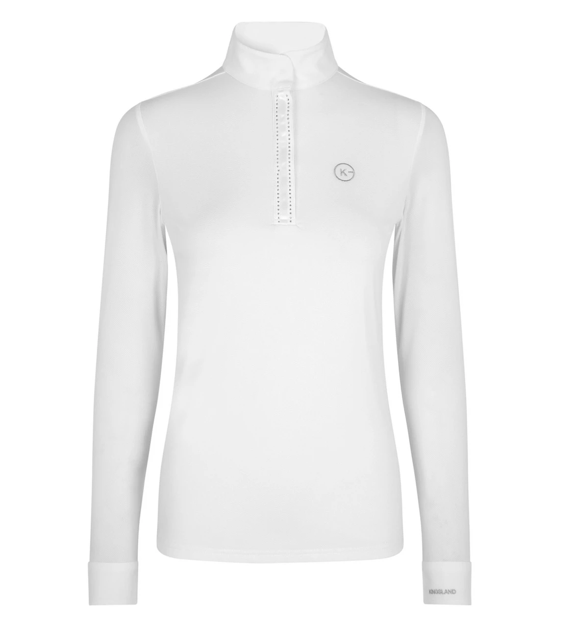 Women’s Kingsland Heidy Show Shirt offers riders stunning elegance backed up with with performance technology for competition. The Heidy Long Sleeve Show Shirt from Kingsland Equestrian starts with stretch piqué mesh with poplin-style show collar, placket, and cuffs. Add classic styling plus feminine accents and silver shimmer and you get a show shirt that’s unique and versatile.