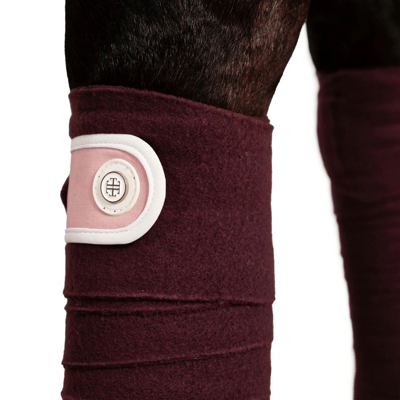 Lara Tweedie Winter Pink Bandages are a must-have addition to your horse’s Winter Pink ensemble! The Winter Pink LT polo bandages feature a velcro tab closure in pink with white binding. The tab is finished with an elegant LT enamel badge with white rubber backing.