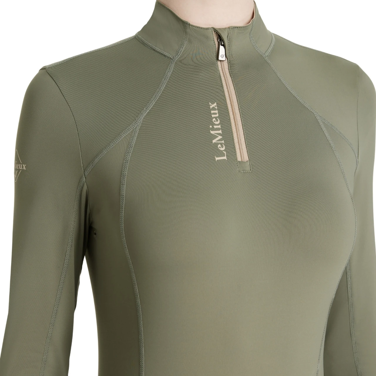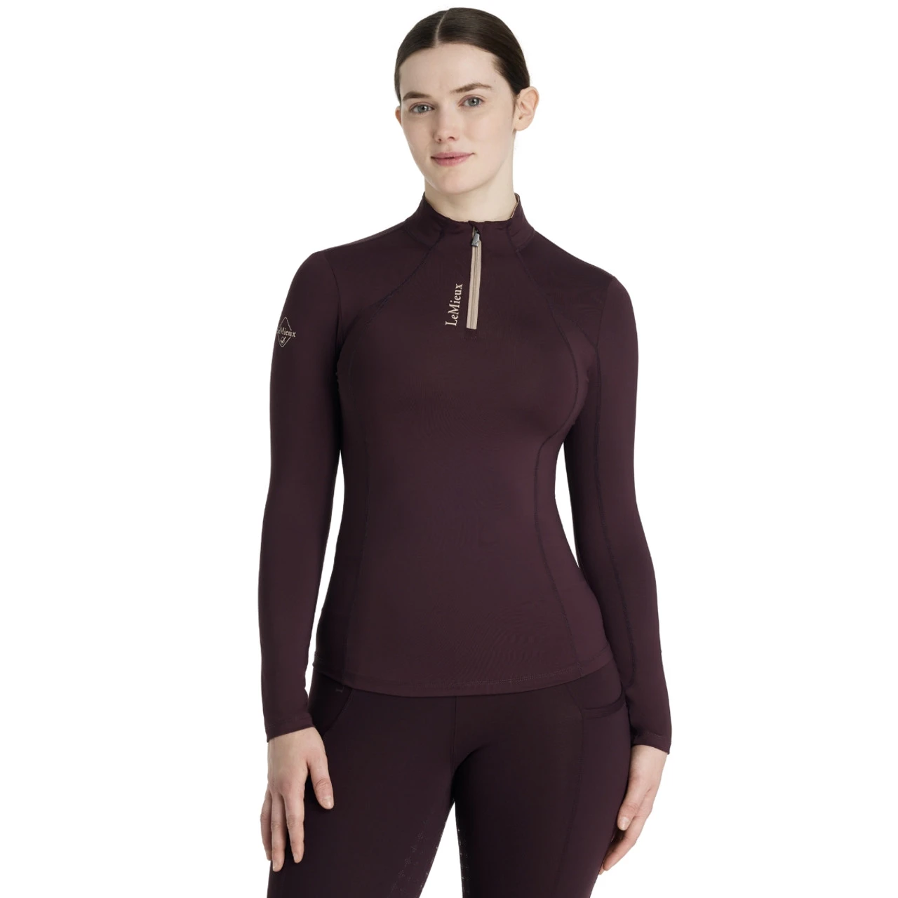 The LeMieux Base Layer has UPF50+ protection so it’s perfect for horseback riding and other outdoor sports. Outstanding stretch, smooth fabric, and soft seams with flat lock stitching ensure a comfortable fit and feel. Discreet vented underarms allow airflow where needed. The Classic Base Layer has a quarter zip, tall collar, and contrast matte logo print, plus sleek styling and flattering seams. Pair the LeMieux Classique Base Layer with a jacket, vest, or sweater when temperatures dip and enjoy the excellent performance across the seasons.