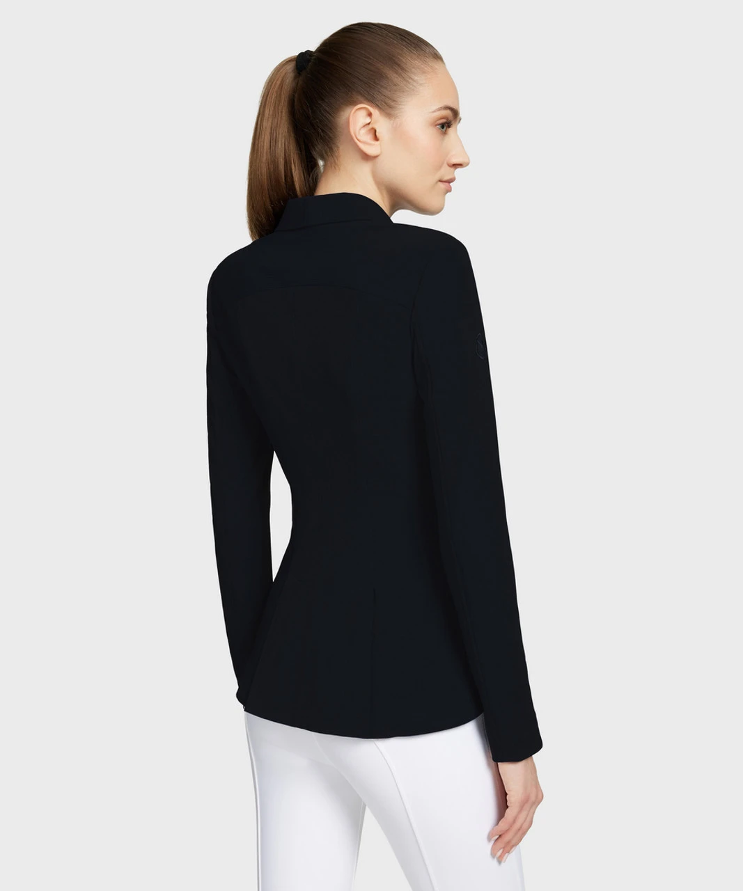 Olympe Ultralight Hunter Jacket has superior stretch for effortless freedom of movement. A hidden zipper under the 4-value front gives a more streamlined fit without risk of gaping. This is an easy-wear and easy-care show jacket that is perfect for hot weather and long show seasons. Samshield Olympe Ultralight Hunter Jacket is ready to help you shine in any ring in Jet Black or Night Blue.