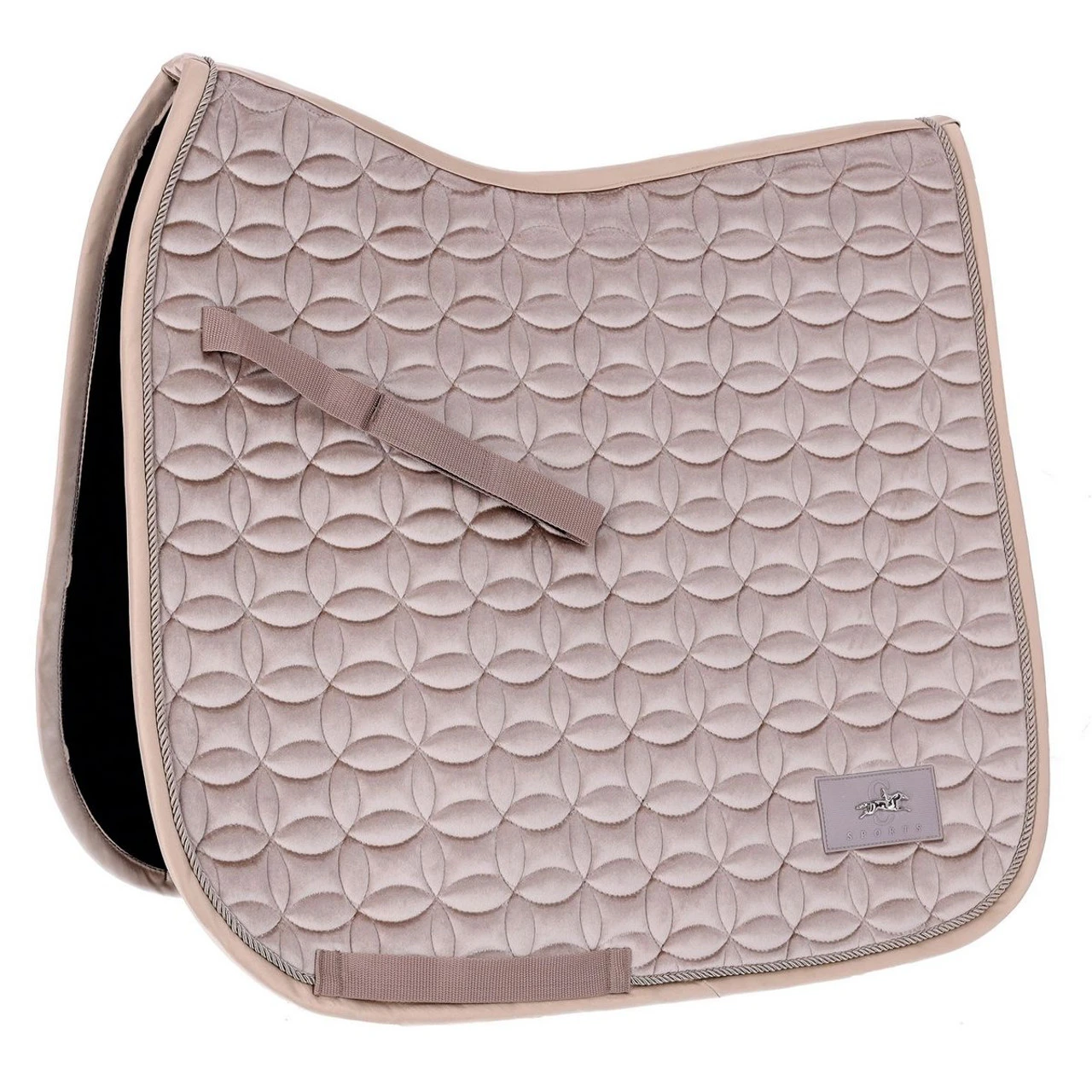 Schockemöhle Velvet Balance Dressage Pad is simply enchanting in velvet with sophisticated modern quilting that elevates durability as well as style. The saddle pad has shock absorbing padding for protection and a quieter ride. Dusty Pink, Dark Navy, and Cardamom colors are part of the Schockemöhle Spring 2025 seasonal collection.