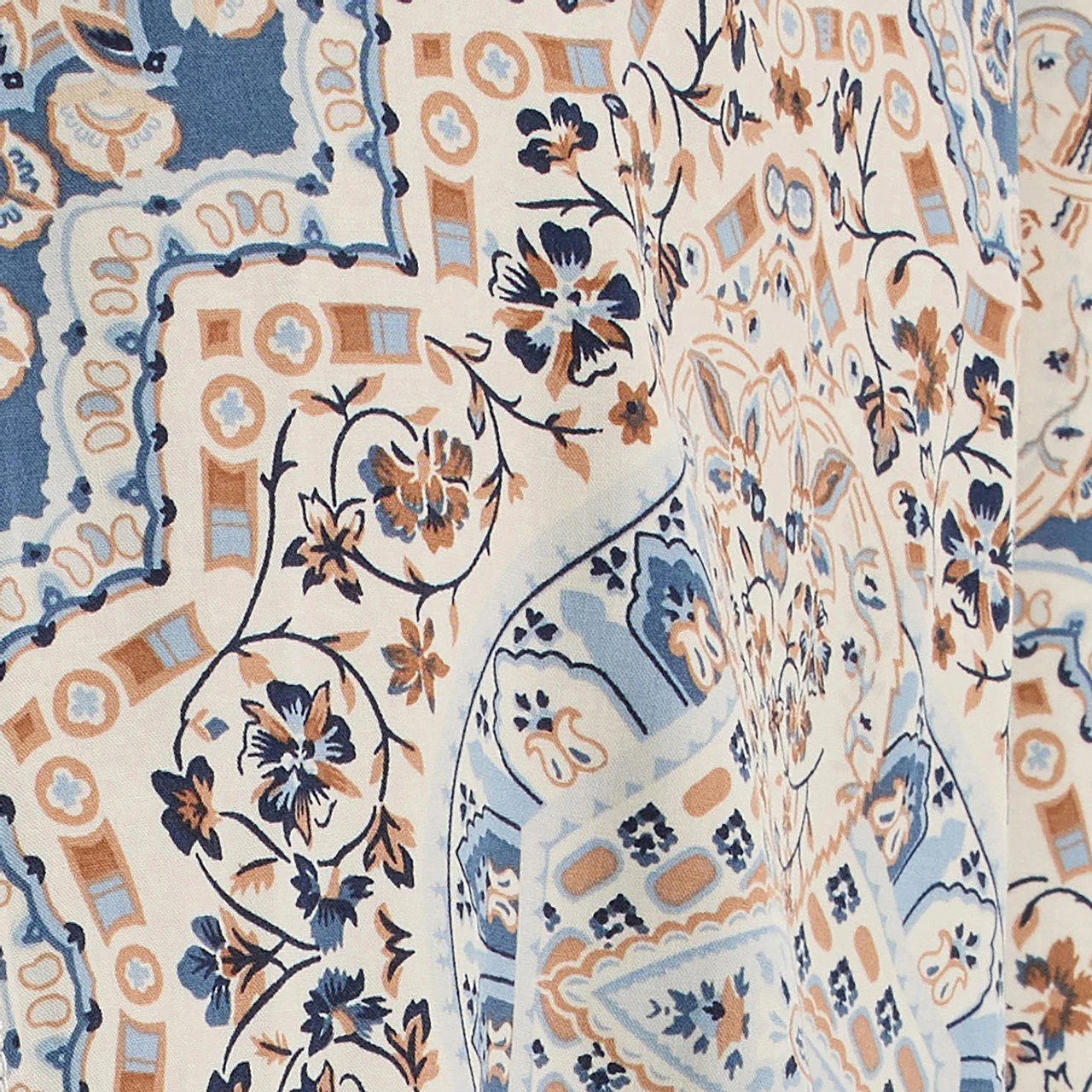 Get ready for summer sunshine with the women’s Wrangler Retro Americana Sundress. The maxi dress is lightweight, breathable viscose with a comfortable, adjustable fit. The gorgeous mosaic tile print in shades of blue, khaki, and sienna on white is perfect for warm weather chic. Add a denim jacket to the Americana Sundress and you’ll get to enjoy it on cooler days, too!